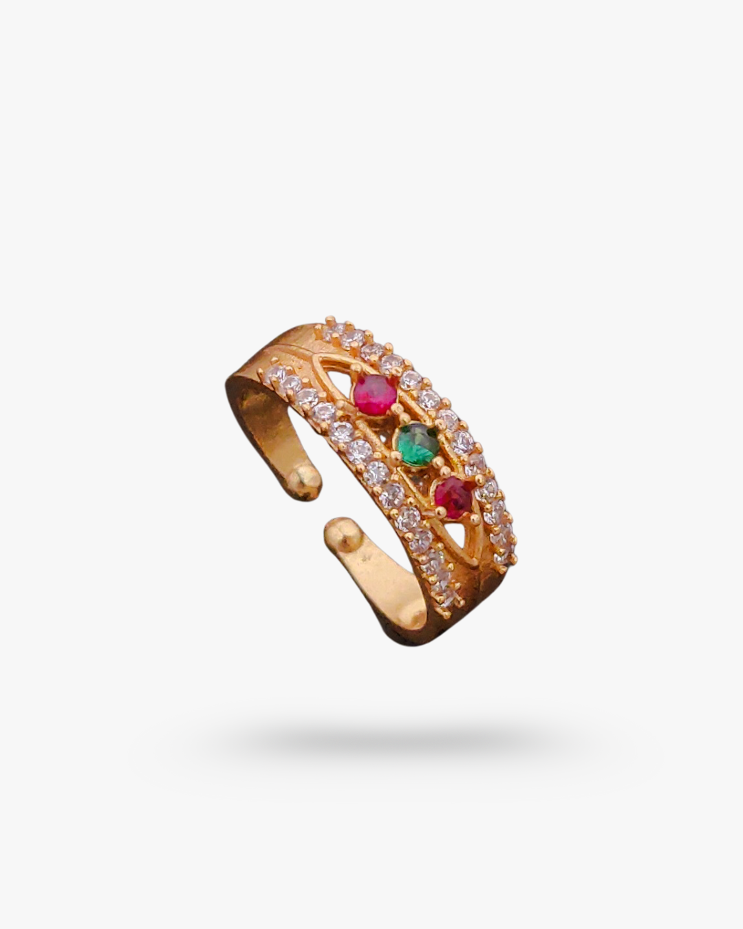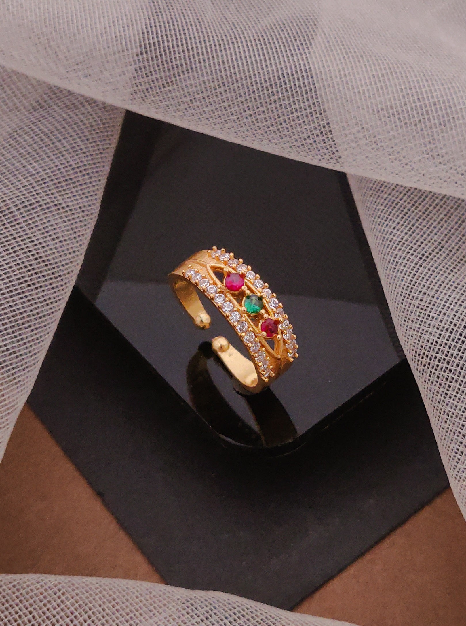 This elegant 18k gold plated ring features three sparkling stones, adding a touch of sophistication to any outfit. Its classic design makes it perfect for everyday wear or special occasions, offering a timeless accessory that complements your style effortlessly.