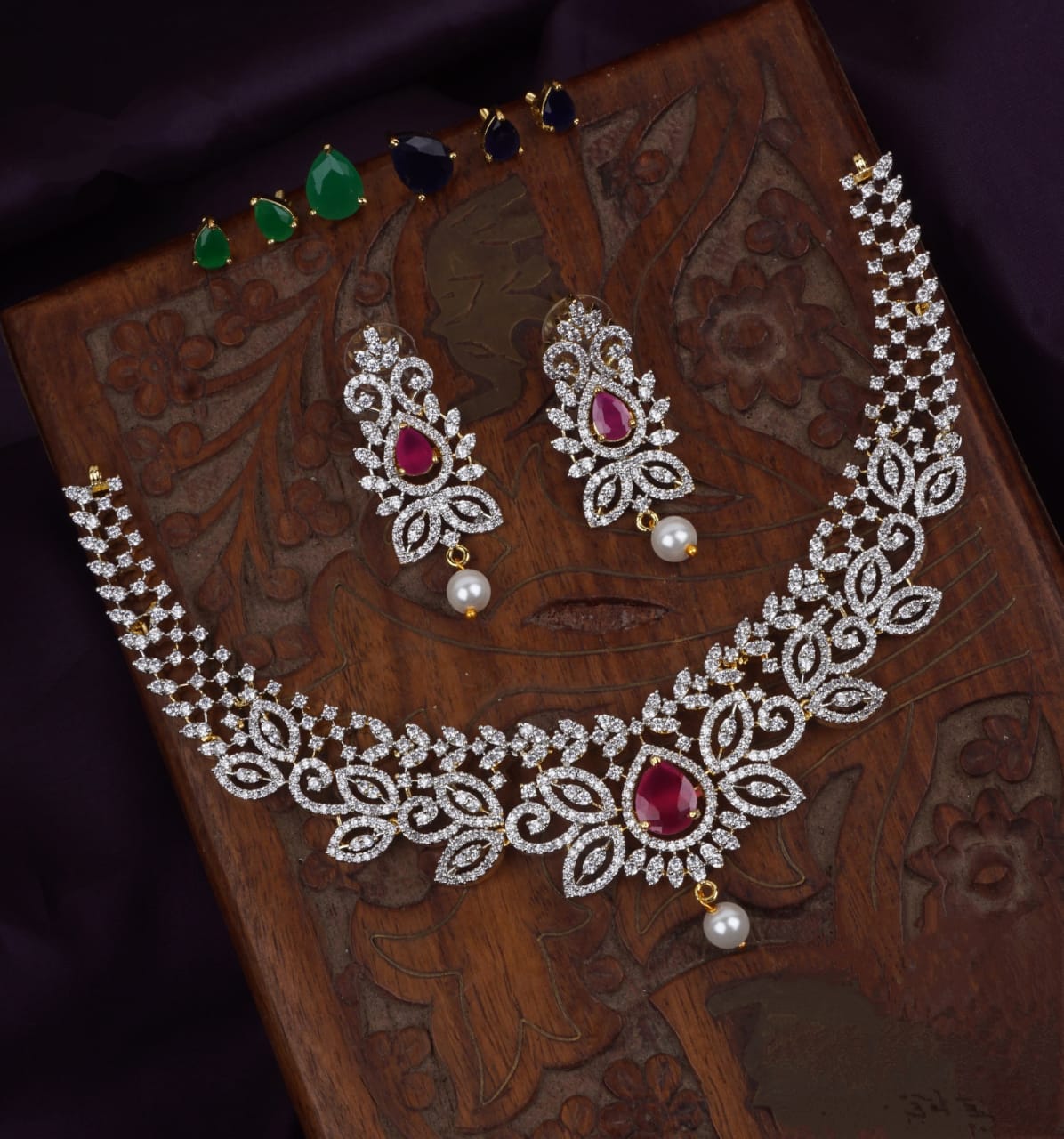 The Changeable White Stone Necklace Set is a masterpiece of versatility, elegance, and timeless charm. Its intricate floral design, dazzling white CZ stones, and interchangeable gemstones make it an investment-worthy piece for every jewelry enthusiast. Whether you want a classic bridal look, a festive sparkle, or a sophisticated statement piece, this necklace set adapts beautifully to your needs.